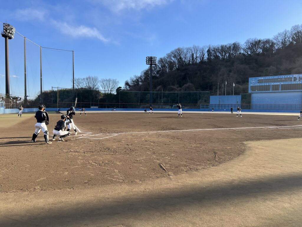 1月14日(水)本日は、玉川球場で、練習を行いました。本日のメニューは、アップ→キャッチボール→トス→シートノック→紅白戦