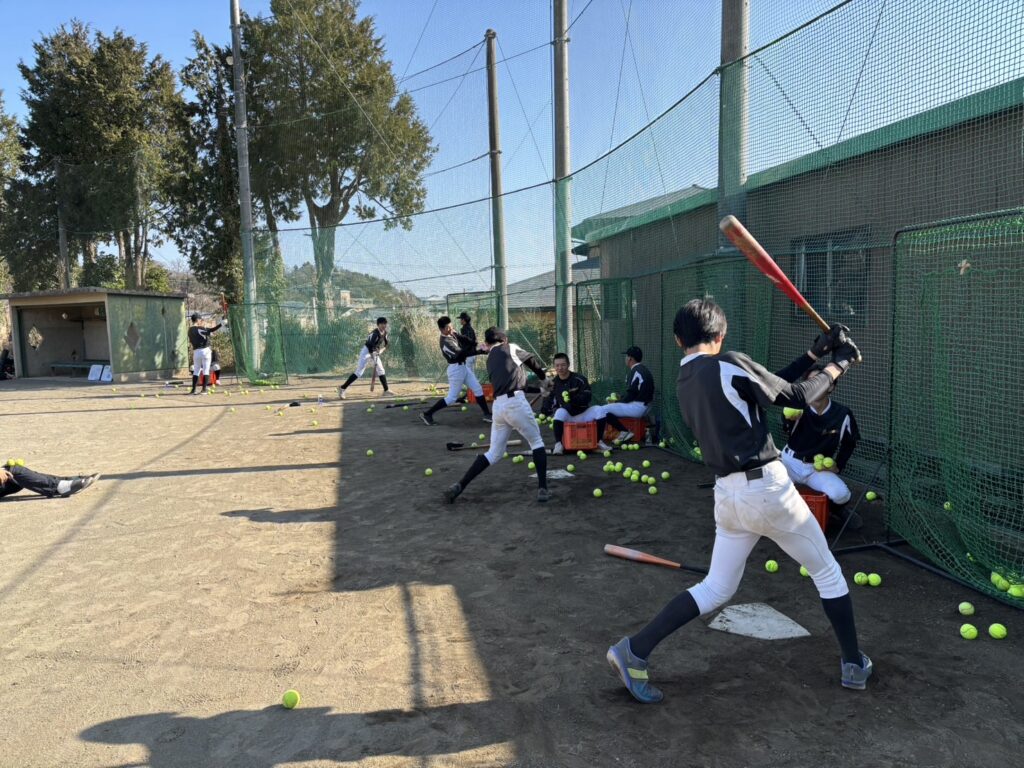 本日のメニューは、アップ→素振り→ローテーション(ティーバッティグ、守備練習、トレーニング)→アップ→ローテーション(バッティング、守備練習、トレーニング)