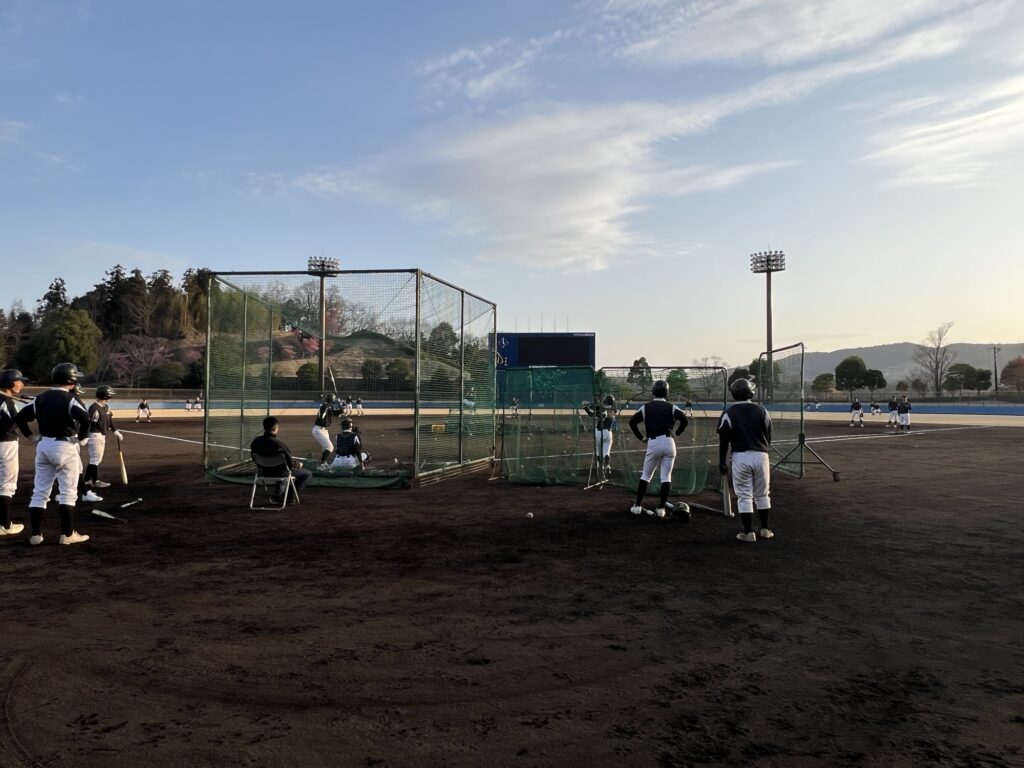 本日のメニューは、アップ➡️キャッチボール➡️トス➡️2箇所バッティング(守備、Tバッティングのローテーション)➡️シートノック➡️投内を行いました。